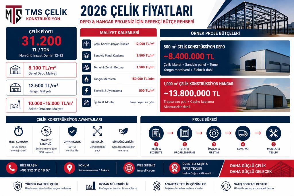 Bu rehberde, 2026 yılı güncel çelik fiyatlarından depo ve hangar projelerinin toplam maliyetine kadar her şeyi şeffaf bir şekilde ele alacağız. Amacımız sadece bilgi vermek değil, projenizi gerçekçi bir bütçeyle hayata geçirmenizi sağlamak.